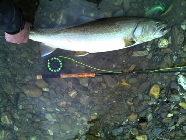 A 9-foot for a 4-weight fly rod is ideal for the grayling and rainbow trout, and an 8- or 9-weight fly rod for the bull trout.